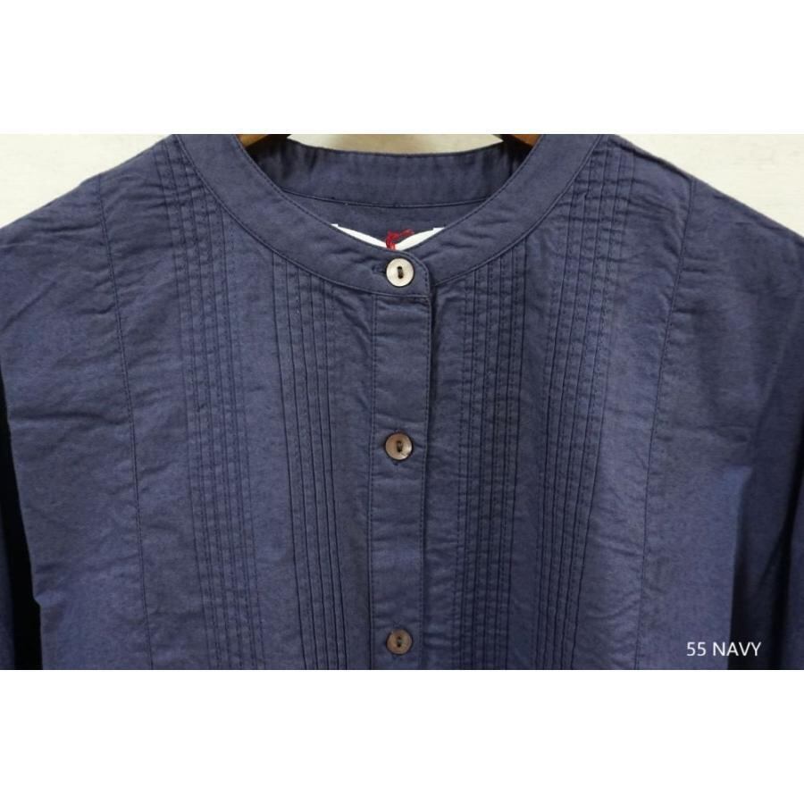 フロントのピンタックデザインがポイント。ヒップラインまでの長めの丈感なので