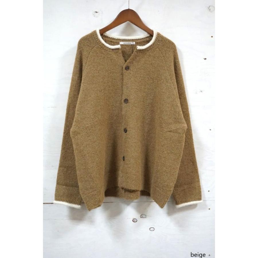 すっきとしたキーネック。袖と襟を配色で切り替え、くるんとさせることでナチュラルな印象にしています。