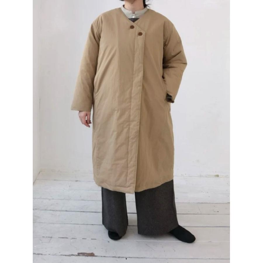 ナチュラル感のある中綿コートは、表地にコットンナイロン・裏地はポリエステルを