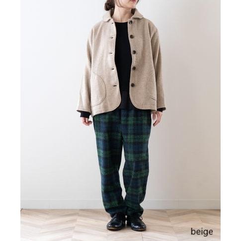 リサイクルウールを用いたビーバー素材を使用。ふんわりなめらかな肌ざわりの柔らかな生地感。