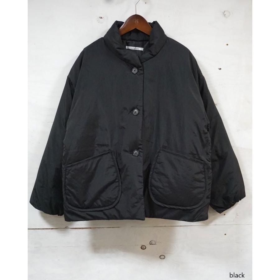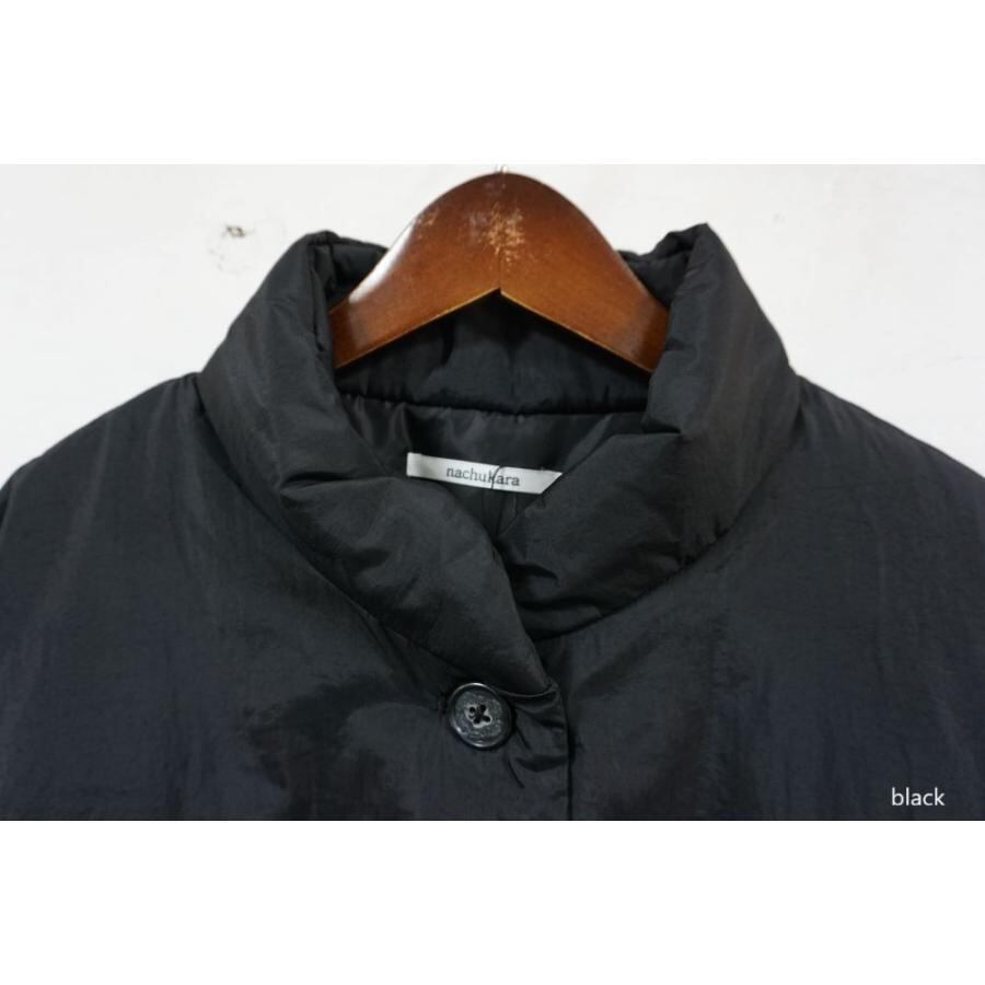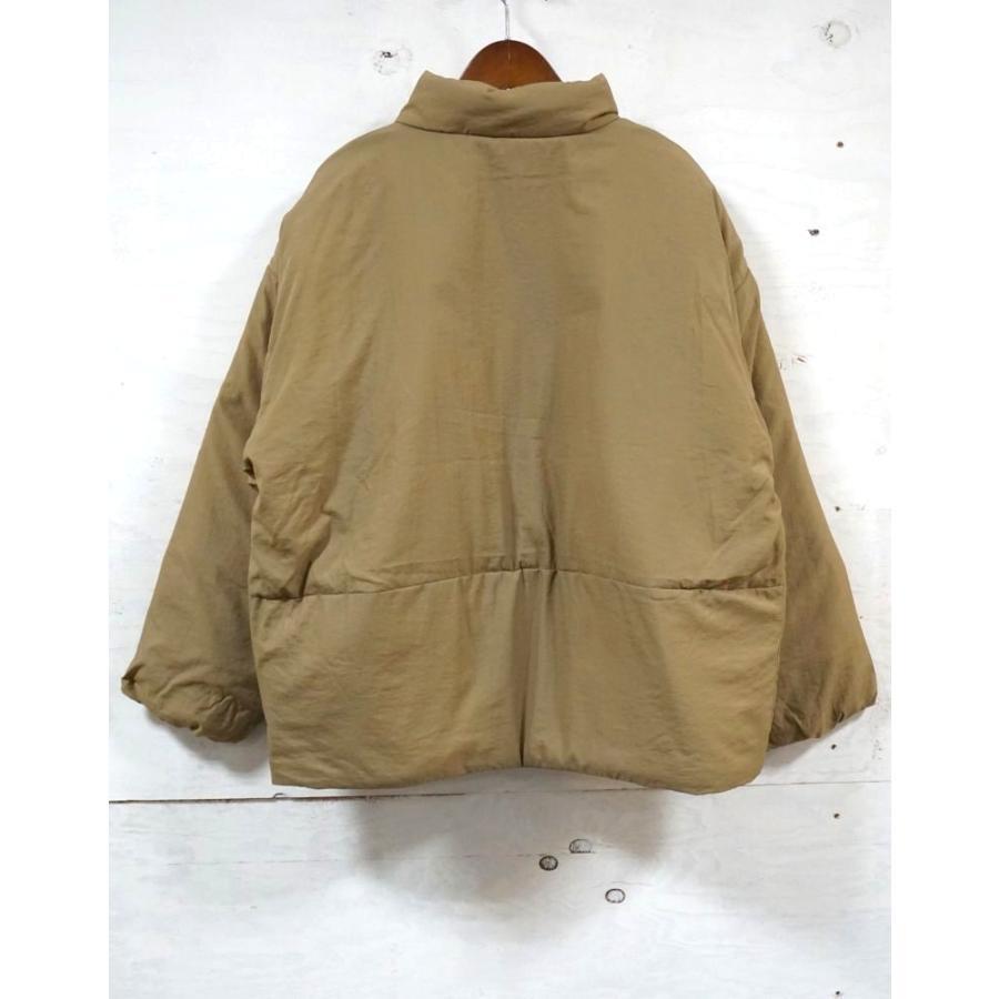 薄手ナイロン素材の中綿入りスタンドカラージャケット。
