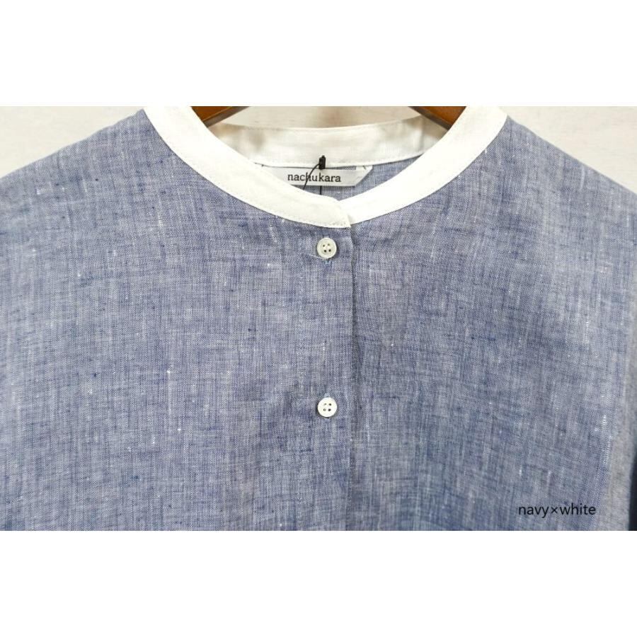 【商品名】シャンブレーリネン バンドカラーワイドシャツ